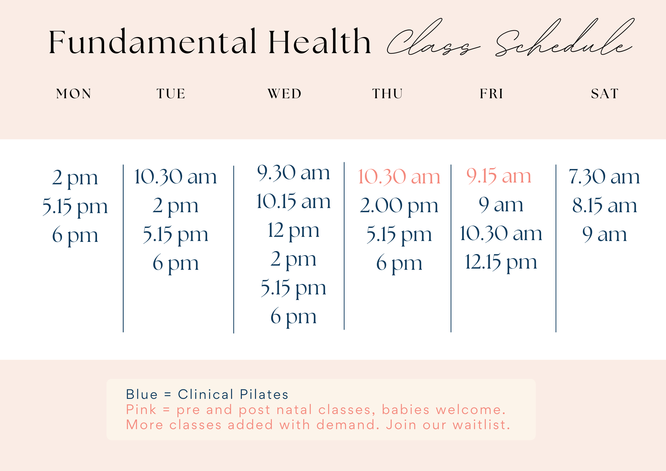 Please call the clinic to be on our waitlist - more classes will be opened with demand.
